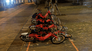 記憶も飛びましたが、自転車も横倒しに・・。