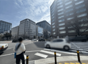 一本曲がるだけで静かな雰囲気ですが、大博通りを振り返ると・・。⬇︎