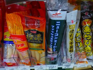 いろんなチーかまやちくわが並んでいますが、よく見ると・・・ ? 。⬇︎