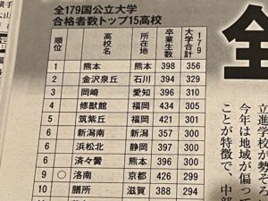 国公立大学合格者トップ15の1位がなんと熊本高校でした。