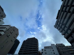 天神の某駐車場から見えた空には少し青空が見えており、少しだけホッとしました。⬇︎