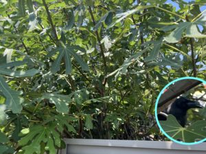 ⬆︎のような感じで駐車場にかかっていた樹がイチジクだったようで、カラスくんの恵みになっていたようです。