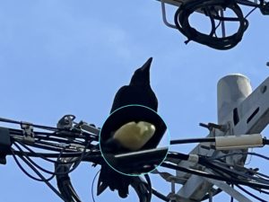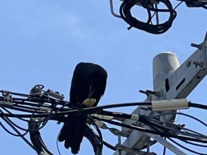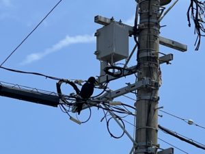 もしや?と思ったその時に、その一羽が飛び立ち近くの電柱の上の安全地帯へ。