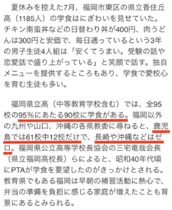 記事によれば、福岡の県立校の95%に当たる90校に学食があるそうです。