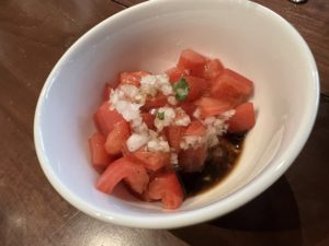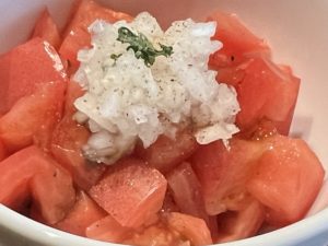 オニオンみじん切りとトマト(スイカかと思いました笑)。