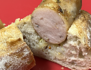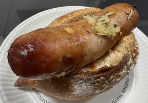 パンを食べるというよりブリブリのソーセージを食べるという・・笑。