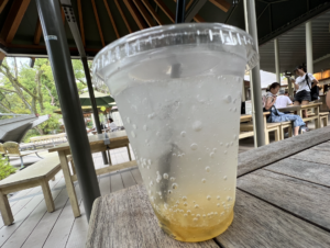 (あまりにもの暑さで神宮内のお茶処でレモネード、しみました)
