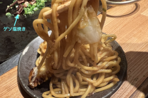 (ゲソ塩焼きで飲もうと決意した瞬間に焼きそば到着で・・笑)