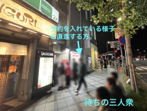 お店の前には座って待ち時間を過ごしているお若い方々と、真っ直ぐに進んでお店に入る寸前の方も。⬇︎