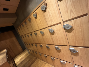 銭湯のような下駄箱が。