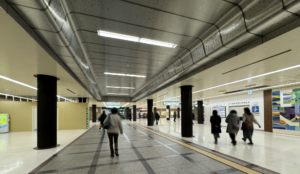 やはり左に通路があります、曲がれば賑やかな地下街『博多駅地下街』があるはず・・。⬇︎