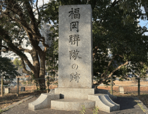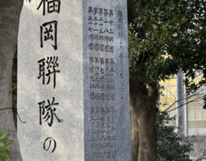そこによると、『かって郷土の人々に福岡聨隊として親しまれた歩兵第二十四聯隊は明治一九年八月十七日 明治天皇から軍旗の親授をうけてこの地福岡城跡に創設された部隊である。』だとか・・やはり石碑でした。