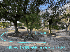 このようなさり気ない案内石(なんと呼べば良いのか苦笑)がまだそこかしこにありそうな気がする舞鶴公園でした笑。