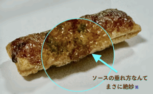 開けた瞬間から香るのはまさしくソース風味笑、周囲に散らばるのは紛うことなき青のり笑・・・これは本当はたこ焼きでは?笑。⬇︎