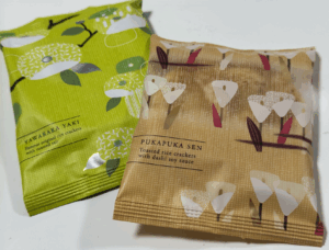 左:YAWARAKA YAKI 右:PUKAPUKA SEN・・ふざけているのかと大笑。