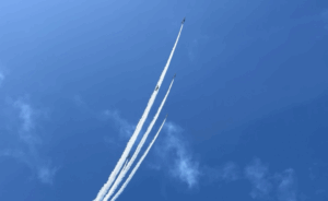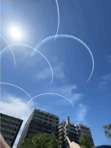 旋回開始!・・これはブルーインパルスといえばのサクラではありませんか!(アクロバット飛行(展示飛行)の代表的題目)。⬇︎