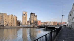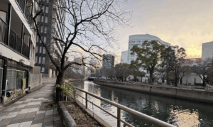 春への準備を進めている川沿いの桜道をゆっくり通りながら博多区方面へ・・。⬇︎
