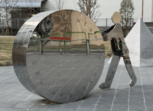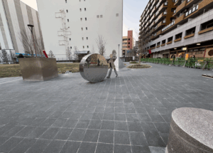 そんなこちらは渋谷区立中央図書館で、このオブジェは「明日を拓く Creating Tomorrow」という長崎哲士さんの作品で、移転オープンした際に設置されたようです。