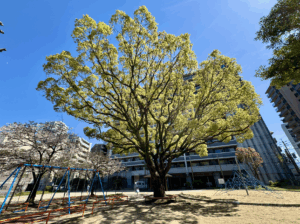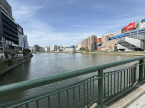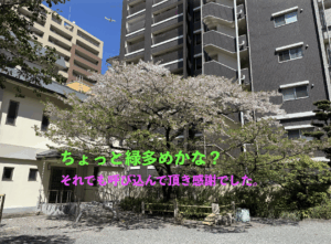 こちらから左手(西日本シティビルさん側)に曲がった先の緑がとても綺麗でした(こちらは紅葉時には黄金に)。⬇︎