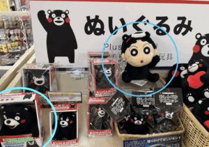くまモン被り物を纏ったしんちゃんモンの横に・・あれ?、手前のは探していたものでは?。