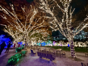 公園内部には入れないようになっていますが、光の大きなオブジェがたくさん・・。⬇︎