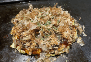 丁度広島焼きを食べ終わる頃に豚玉も完了でした(再度ひっくり返しは簡単です笑)。⬇︎