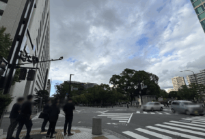 これまたいつもの天神中央公園へ渡る前のスクランブル交差点。⬇︎