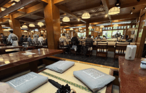 大きなコの字カウンター席周囲には大人数用の掘りごたつ用のテーブル席も用意されています。⬇︎