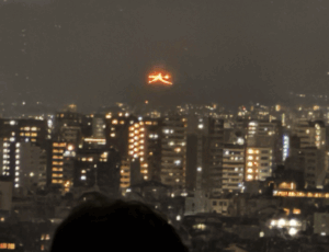 もう大満足で、皆さんの後ろからゆっくり消えゆく送り火を見ていたら・・またしても歓声・・門門門!(ちなみに見えるのは門一つ笑)。