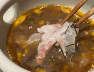 ⬆︎のように、しっかり絡ませた鯛をご飯に乗せて頂くのですが・・あまりにもの美味しさで・・、ご飯に盛り付けた写真を撮り忘れ苦笑。