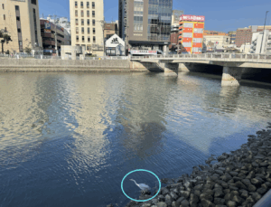 すると川縁にさりげなくアオサギ?くんが。