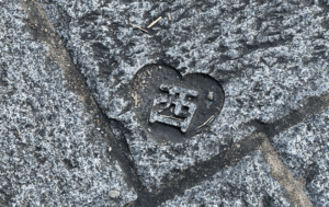 そんな短い散策中の某日、勝手に気になっている西中洲石畳の隠れ♡マークの最後をついに発見しました。