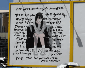 今回の片側は文字のみ、女性の背景には謎の文字列が・・。⬇︎