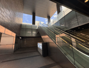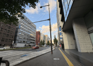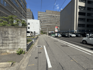 そのまま地上へ上がって、九電ビルさん横に沿って直進。⬇︎