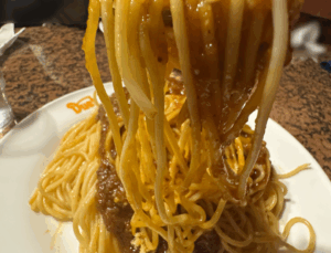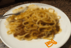 これは学生時代に自分で作って食べていたパスタ3人前+マ・マーのミートソース状態を見たかのような既視感を覚えました(懐かしい感覚)。⬇︎
