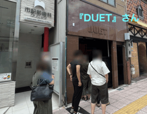 ほぼ皆さん、写真を撮る僕の後方に避難(お店の逆側:日陰少々あり)。