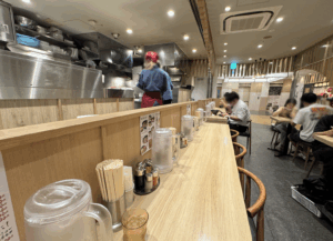 お店は広々ではありませんが、カウンター席も余裕の席配置と4人掛けテーブル一つがありました。