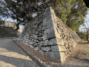 この近辺の石垣は被災しなかったようです・・高く立派です。