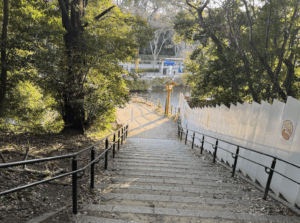 この階段の先は護国神社さん・NHKさんや、大濠中高があるあの通りです。⬇︎