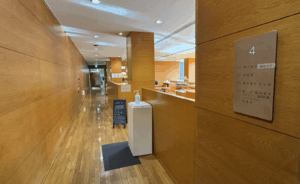 4階までエレベーターで上がるとすぐに喫茶店が・・。⬇︎