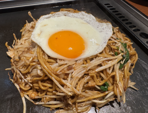 目玉焼き乗せ焼きそば!!。