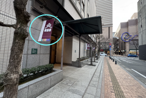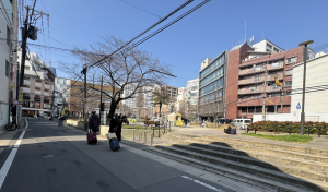 真横の専門学校の階段を登っての一枚です。