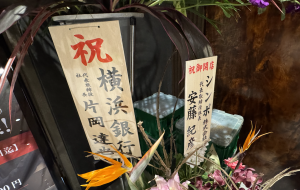 入り口はお祝い花で埋め尽くされていました。