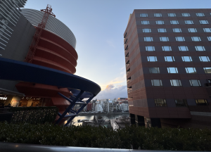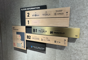 一階の支柱2本は電光掲示になっていて、柱の角の部分も電光掲示板になっていました(何気なく技術って凄いなと)。⬇︎