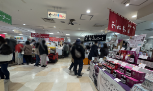 『鶴屋』さんの物産展へ来ていつも思うのが・・、活気の凄さと、食べ物の実演販売店の多さ。