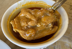 それから、やっとチキンを適当大にほぐし、そのまま頂いたり、時々レッドに浸したりしながら全て。