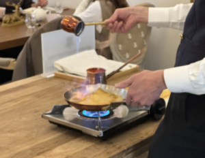 すごくお洒落なパティシエさんが実演デザートを作られていました。