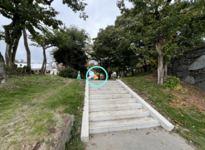 なんとなく、この階段の先は新設された裁判所跡地の駐車場ではと。⬇︎