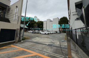 そのまま国体道路裏から若宮神社の裏口へ。⬇︎