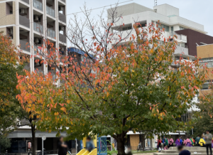 公園周囲の木々が一部紅葉化していました。⬇︎